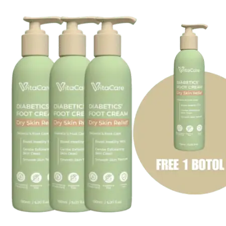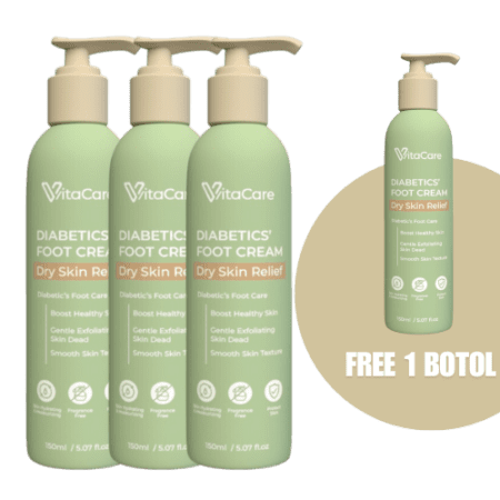 Hampir 80% Pesakit Diabetis Mengalami Komplikasi Masalah Kulit Kering,Bersisik,Gatal Dan Merekah. Aloe Vera Dan Ceramide dalam Vitacare Akan Memastikan Kulit Kaki Pesakit Sentiasa Dalam Kondisi Lembap dan Sihat