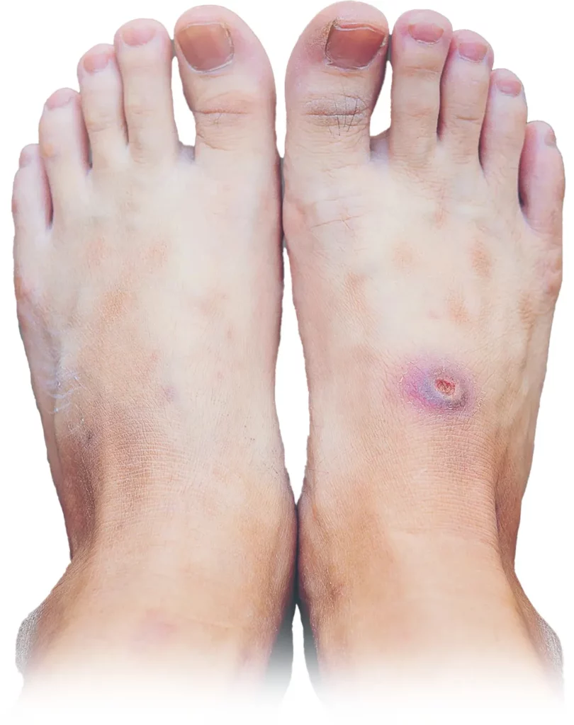 Ulser merebak ke dalam tulang kaki & mula rasa sakit