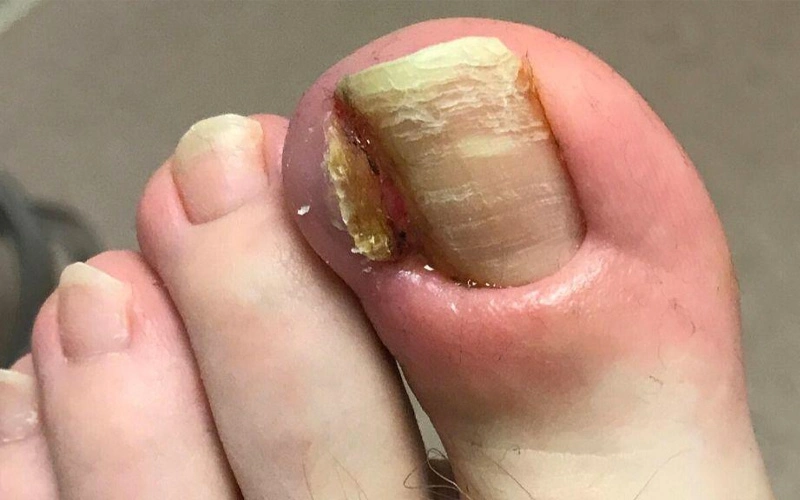 Kuku menjadi sangat mudah rapuh. Keadaan ini menyebabkan sakit hujung jari kaki.